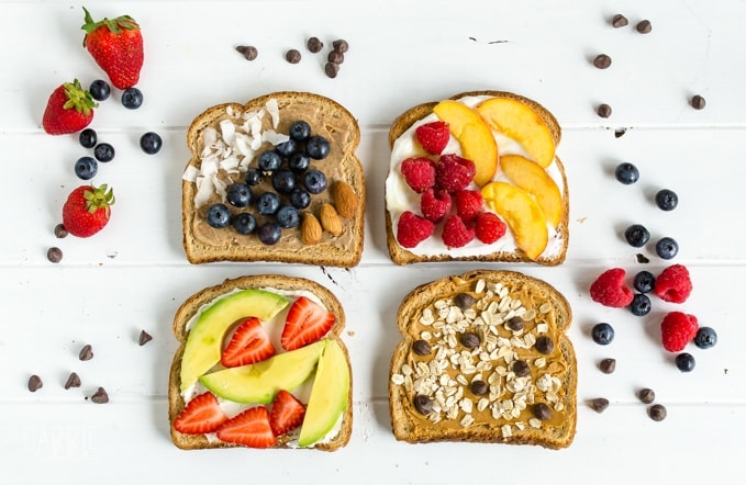 We have Chellie from Art From My Table to thank…she’s sharing these toast recipes with us today. Her blog is full of healthy, whole food recipes, like these strawberry cheesecake pancakes – be sure to check her out for some foodie inspiration.