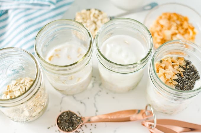 Making these tasty coconut overnight oats jars is really quick and simple. It’s why they make such a great meal prep recipe. There’s no muss and no fuss and then a little time in the refrigerator and you have an awesome meal to enjoy or share!
