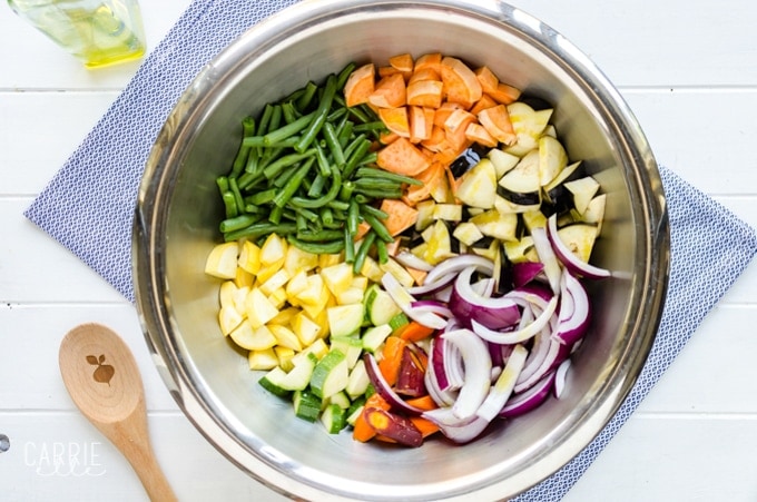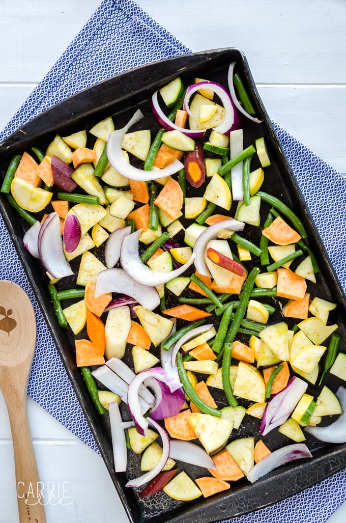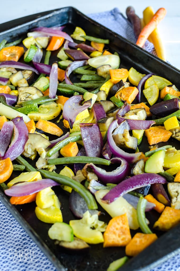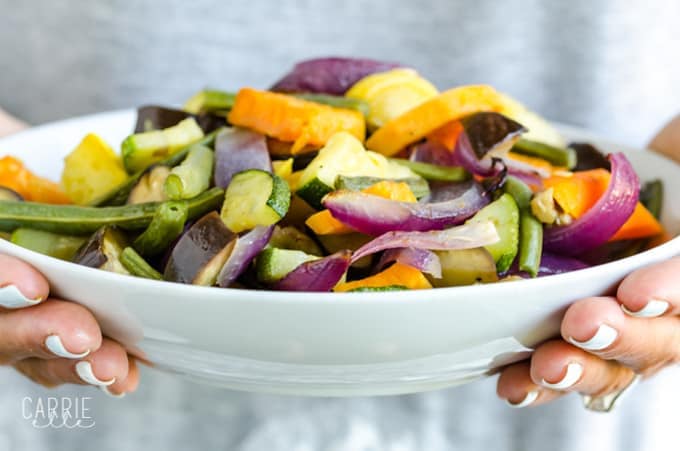I love, love, love this 21 Day Fix-friendly roasted veggie medley from Chellie at Art From My Table. It’s full of beautiful colors (eat the rainbow!) healthy veggies, and tons of flavor.