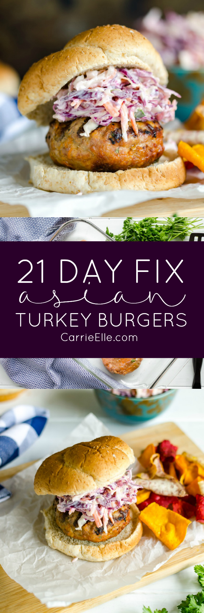 This week, Chellie from Art From My Table is sharing these amazing 21 Day Fix Asian Turkey Burgers with slaw, and I am super excited to add them to our meal plan for next week. I think you’ll love them, too!