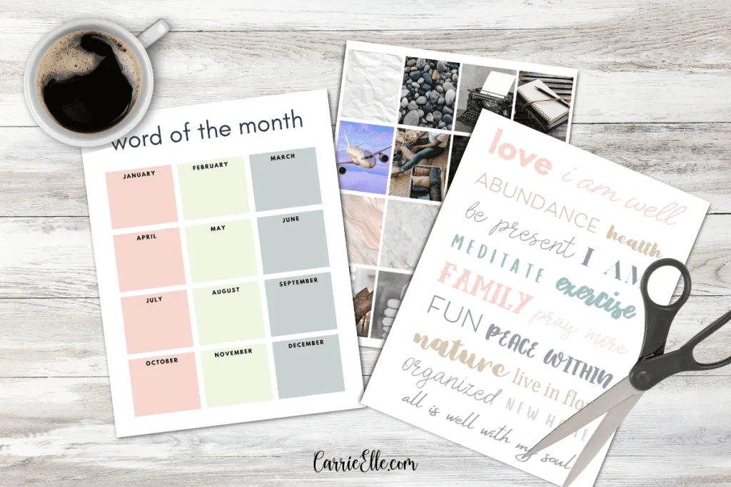 - Vision board planning page (so you know what you want to put on the board before you start making it!)