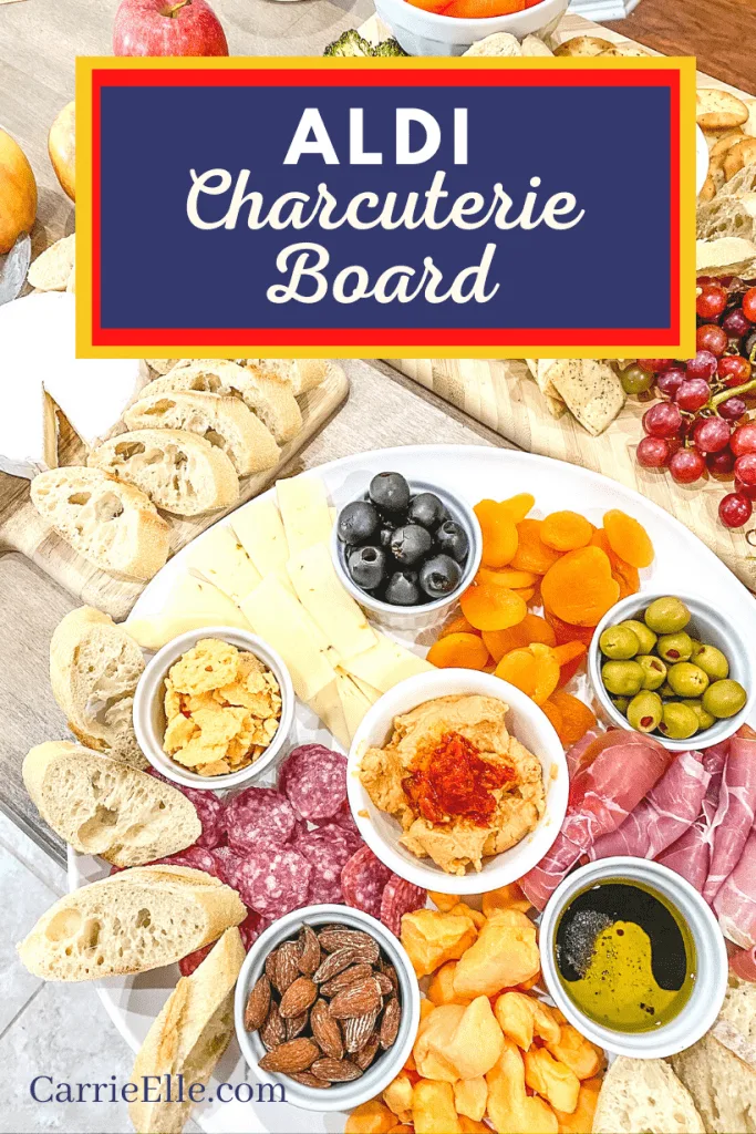 My favorite thing about visiting my local winery is, of course, the wine…but also the charcuterie board. They put together the most gorgeous trays of cheese, crackers, meats, fruits, and spreads. Charcuterie boards are a super easy way to feed a crowd. Or, you can pull one together for an easy dinner idea. The one I want to share with you today is an Aldi Charcuterie Board that will feed 8-10 people, and on a budget at that!