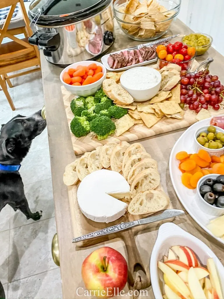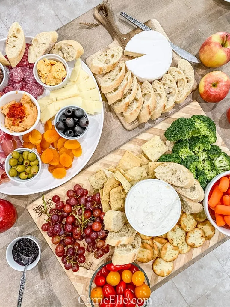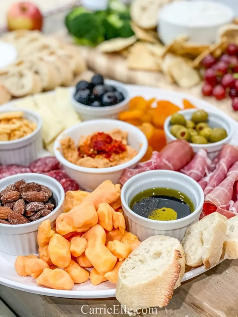 The key is to include lots of things for people to snack on. Ideally, the foods should all go well together. But because people will be snacking on it, it’s kind of a free-for-all of deliciousness!