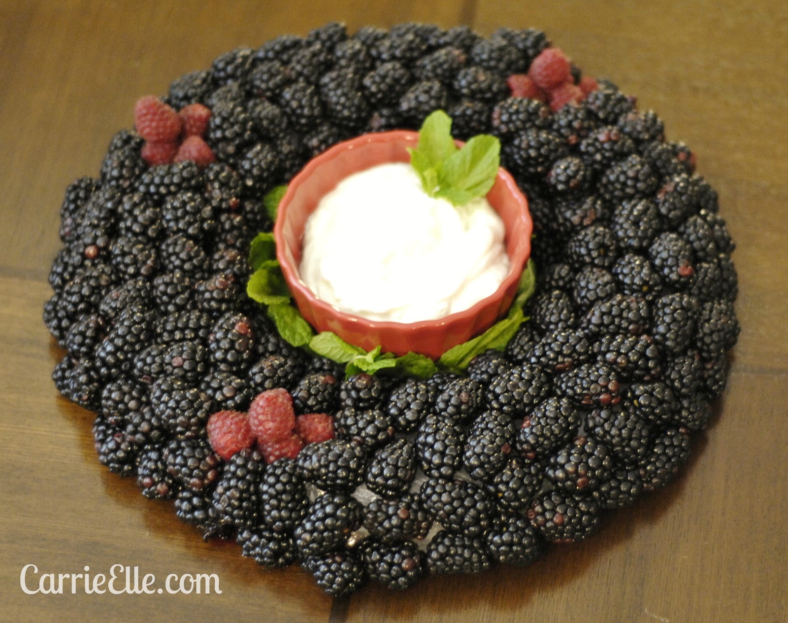 As far as the actual edibility goes, it’s very easy to eat.  I just picked the berries right off the wreath (the toothpicks stay put, in case you are wondering).  You might leave out some toothpicks for people to use to pick the berries off (especially if there’s dip involved).