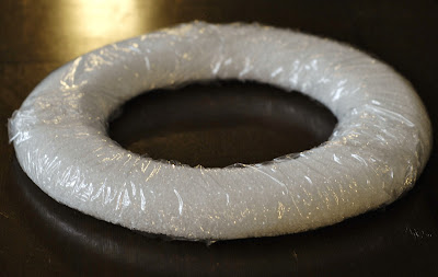 • Styrofoam Wreath (mine was 11″ across, flat on the bottom, and came from the flower decorating section of Michael’s – styrofoam wreaths are expensive and this one was the cheapest I found – around $5 – and was also the size I was looking for).