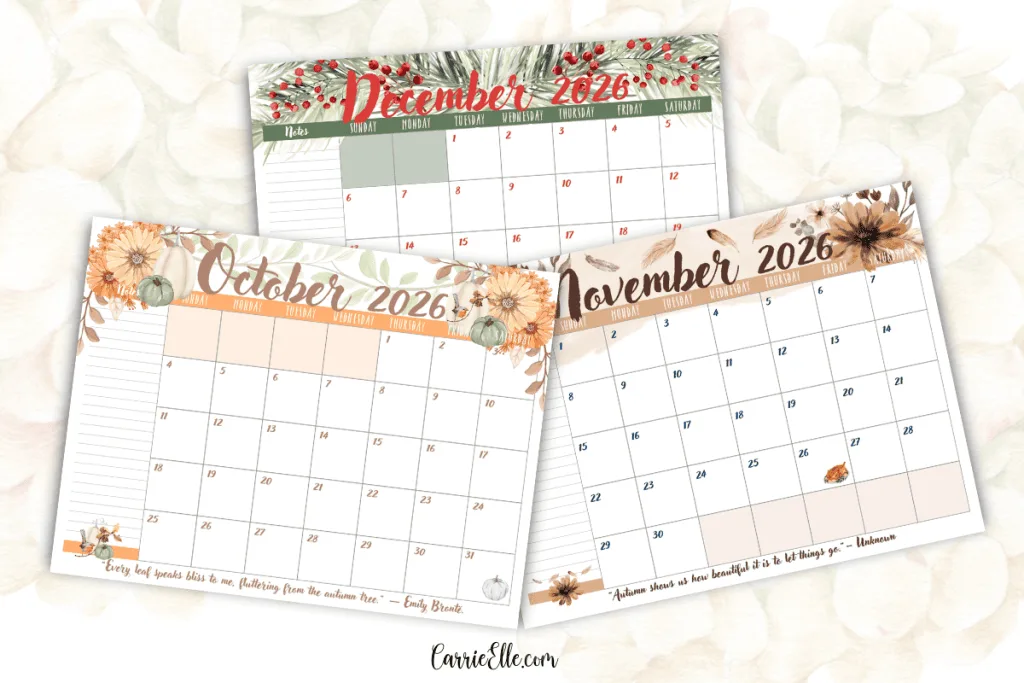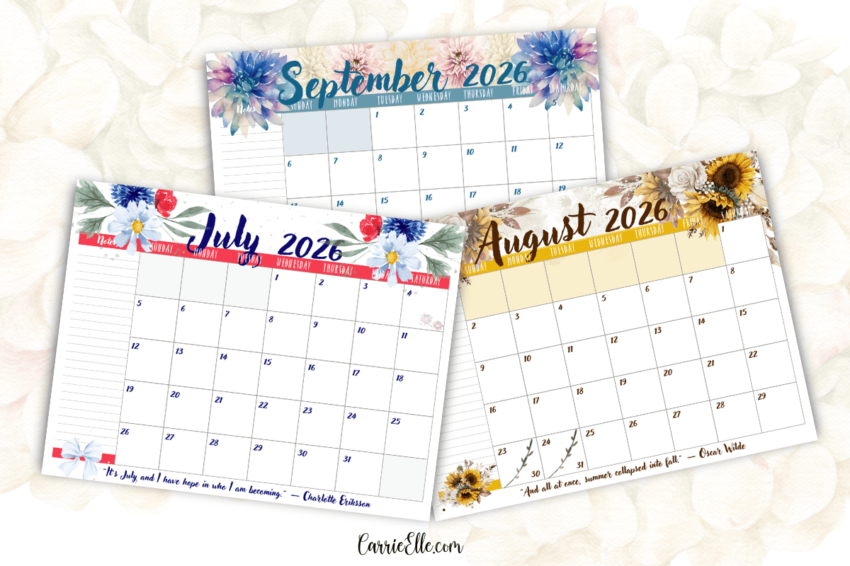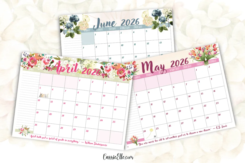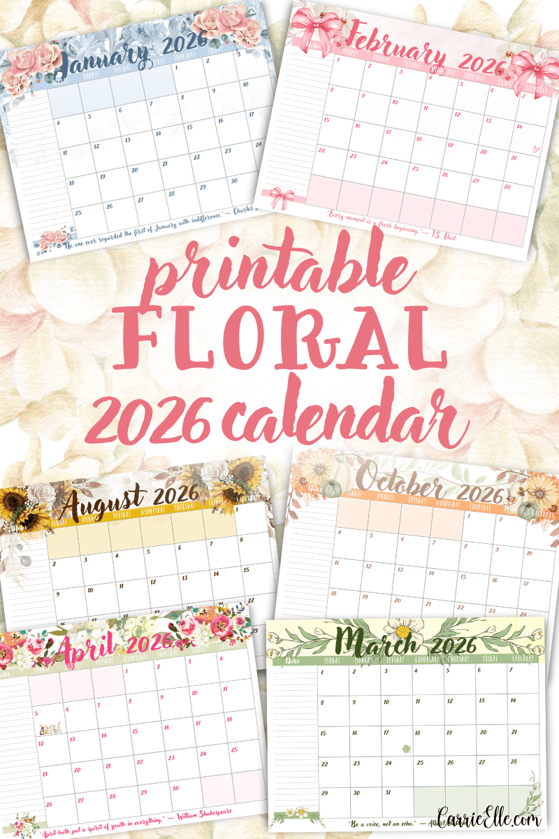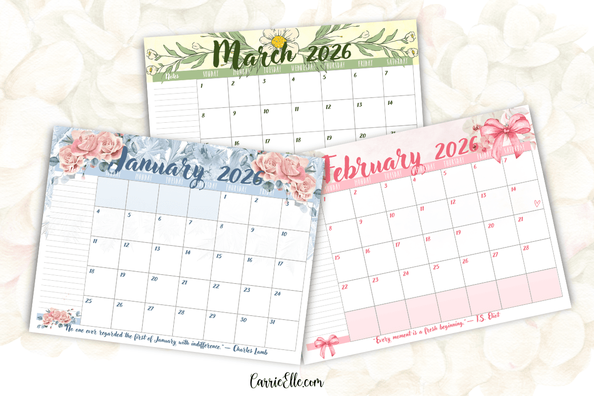 To download this free printable 2026 floral calendar, just click here, or click on the black and white download button below. If you have any trouble with the file, shoot me an email and I will send you the calendar that way! I can’t wait to see how you use your calendar. I would love it if you’d tag me on social if you ever share it. Please tag me at @shopcarrieelle so I can see. <3