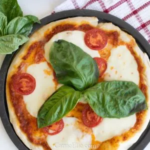 We’re keeping it super simple today with a “homemade” (almost homemade) Trader Joe’s Margherita Pizza. The reason I call it almost homemade is because we’re using the TJ’s pizza crust, which is mostly ready to use. I wanted to bring this super easy pizza recipe to you today because, A) it’s Trader Joe’s Week and we all love us some Trader Joe’s Pizza Dough, right?, and B) I love pizza and blogging about pizza but until today, the blog has been missing a really extra simple pizza recipe like this one.