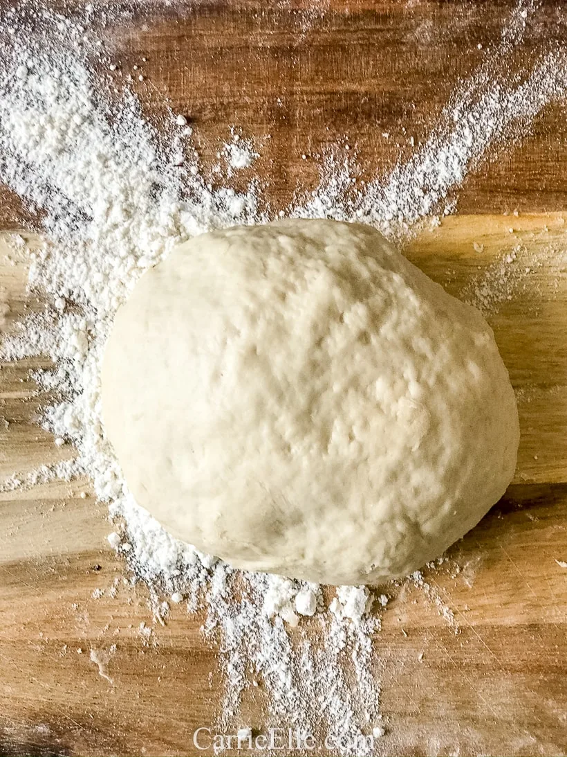 The dough needs to rise before you start to work with it. The instructions say to let it rise for 20 minutes. I’ve found that it’s easier to work with if you can leave it out even longer. As it gets closer to room temperature, it’s a lot easier to stretch and manipulate the dough.