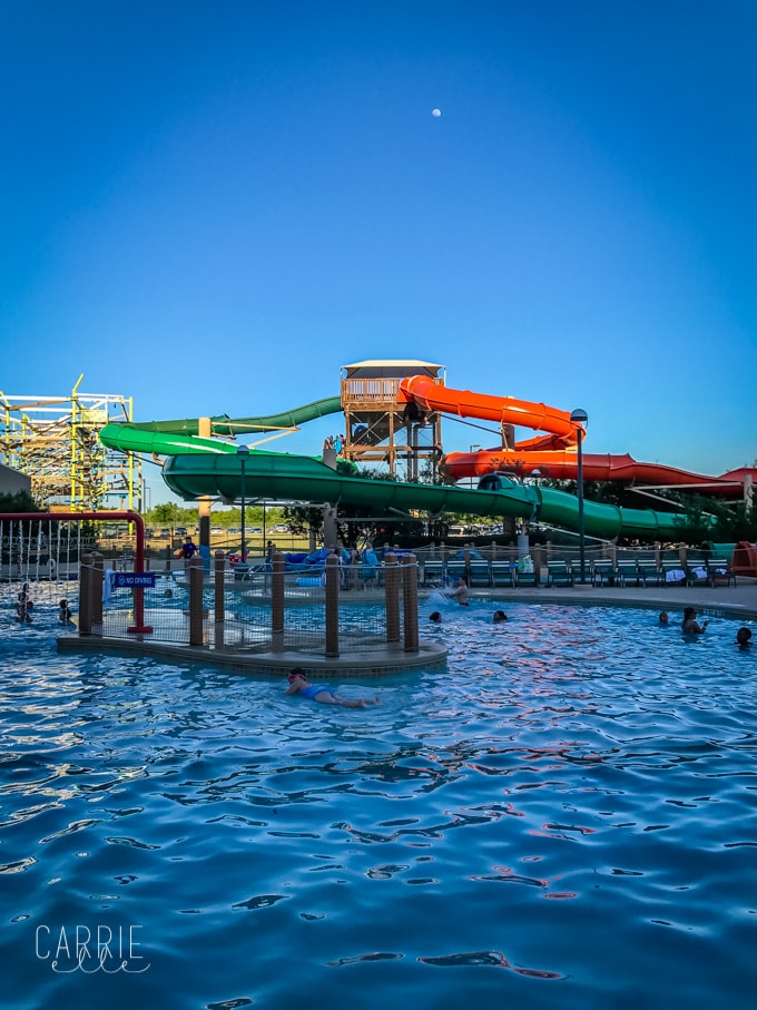 What ages will enjoy the waterpark the most? All ages. I’m not just saying that, either. There’s an entire pool (the most heavily lifeguarded pool in the park) for babies and toddlers – the deepest part of this pool is 18″. Big kids will love the fort, the lazy river, and the wave pool. Bigger kids, tween, teens and adults will have a blast on the big slides. I was too scared to go on the biggest slide (Tornado), but my husband and eight-year-old went on it (and promised me it was amazing and appropriately terrifying and exciting at the same time).
