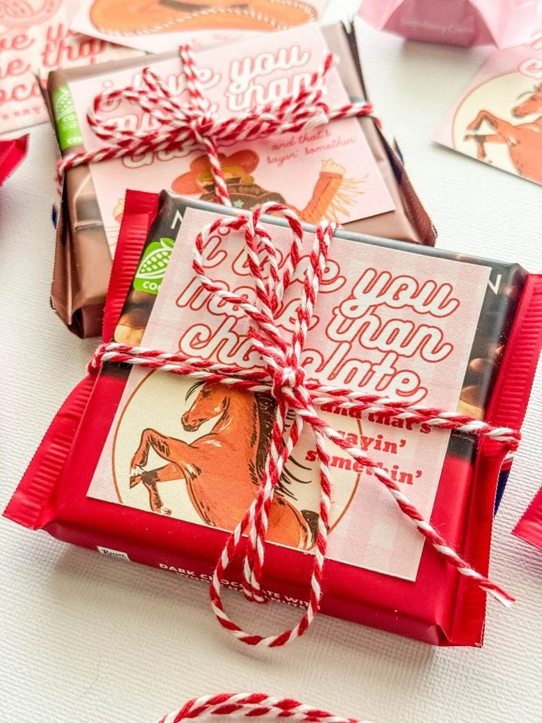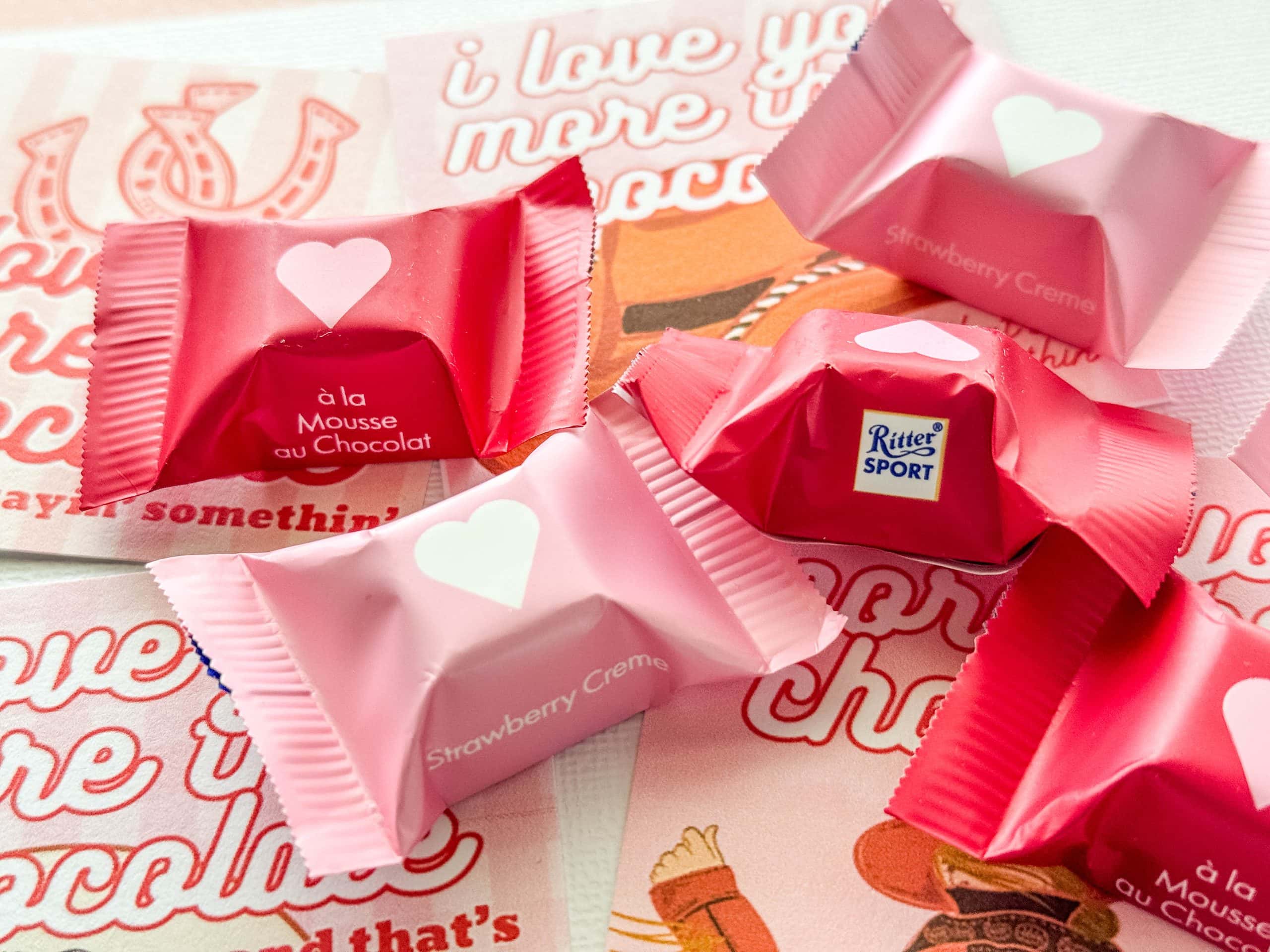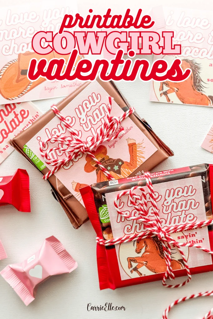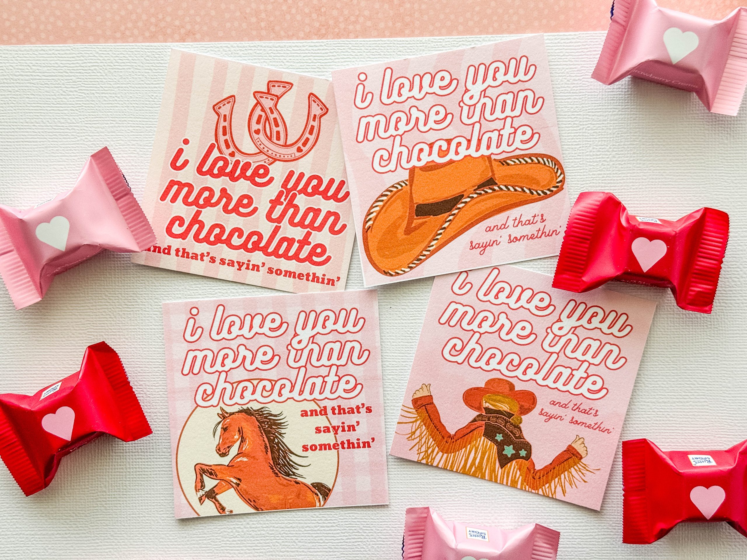 I am going to keep this short and sweet (like, really sweet…milk chocolate-y sweet!). I haven’t blogged or created anything fun in a hot minute. Until today (well, truthfully, I worked on these a little bit here and a little bit there over the last week, but today I am determined to get them on the website for you). I hope you love and put to good use these super cute pink and red printable cowgirl valentines (inspired by my love of horses and chocolate).