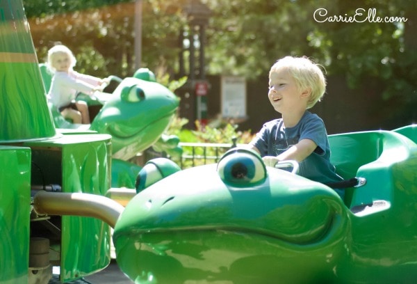 There are ten rides for kids, although the littlest kids are a bit more limited (many – but not all – of the rides require riders to be 36″ and ride with an adult). Families will also love to ride the Frisco Silver Dollar Line Steam Train – there’s even a “robbery” halfway through the ride (sit by the window on the right-hand side of the train, if you can)!