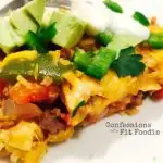 Generally speaking, the food with the lowest points will include lots of veggies and lean meats, and not a ton of oil. If you’re eating tortillas, you’ll find that corn tortillas are the lowest point option. And of course you’ll want to avoid adding lots of extra cheese and sour cream. This doesn’t mean you can’t have cheese (by all means, eat the cheese!). It just means that you need to watch the portion size. Also, a great tip is to sub out low-fat sour cream for regular sour cream (you could also swap it out for Greek yogurt, but Greek yogurt ain’t foolin’ me…).