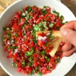 This spicy peach salsa is a refreshing and delicious way to use up some peaches! It's perfect for a summer evening. This vegan salsa recipe is also 21 Day Fix and Weight Watchers-friendly.