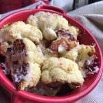Remove from oven and set the broiler to high. Evenly sprinkle cauliflower with ¼ cup freshly grated Parmesan cheese and place under the broiler until golden brown (approximately 2 minutes).
