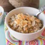 While the oats are in the pressure cooker, toast your coconut chips. This is so easy - just toss them all in a skillet or pan over medium heat. They will toast very quickly - withing a few minutes. Stir frequently until they are toasted and browned on the edges.