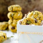Add rolled oats, almond meal, pumpkin pie spice, salt, baking powder, and coconut and stir well.
